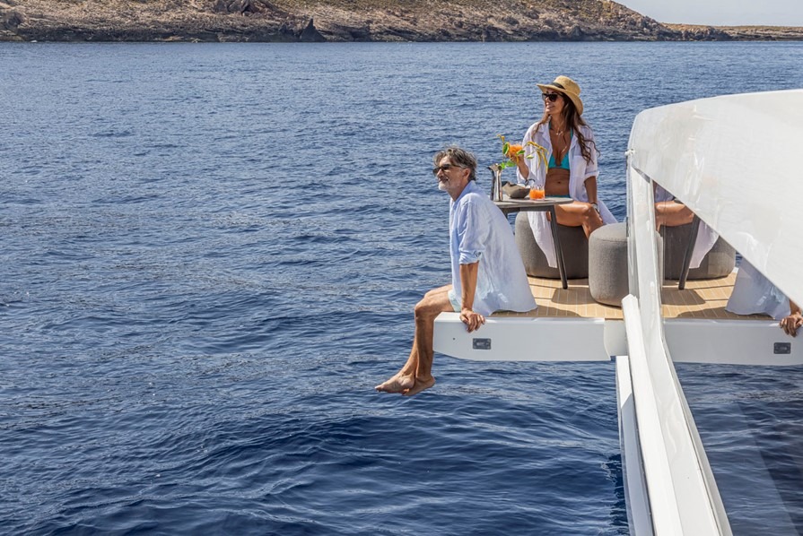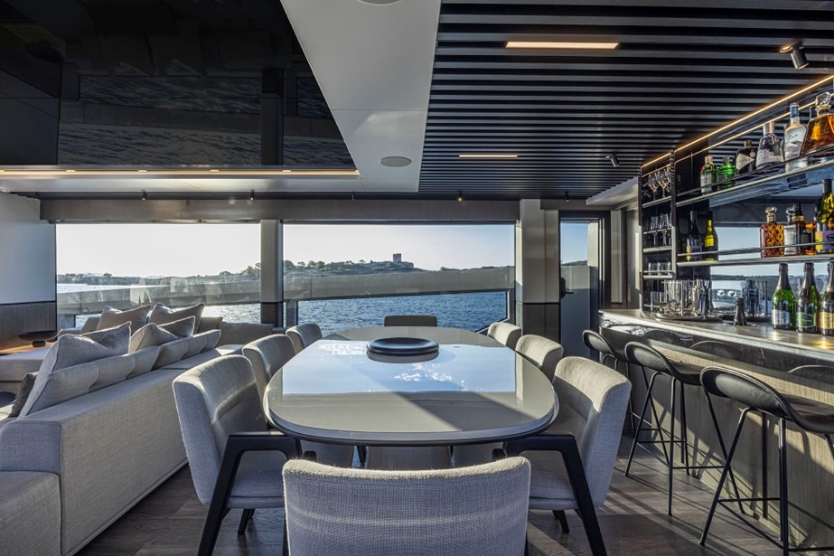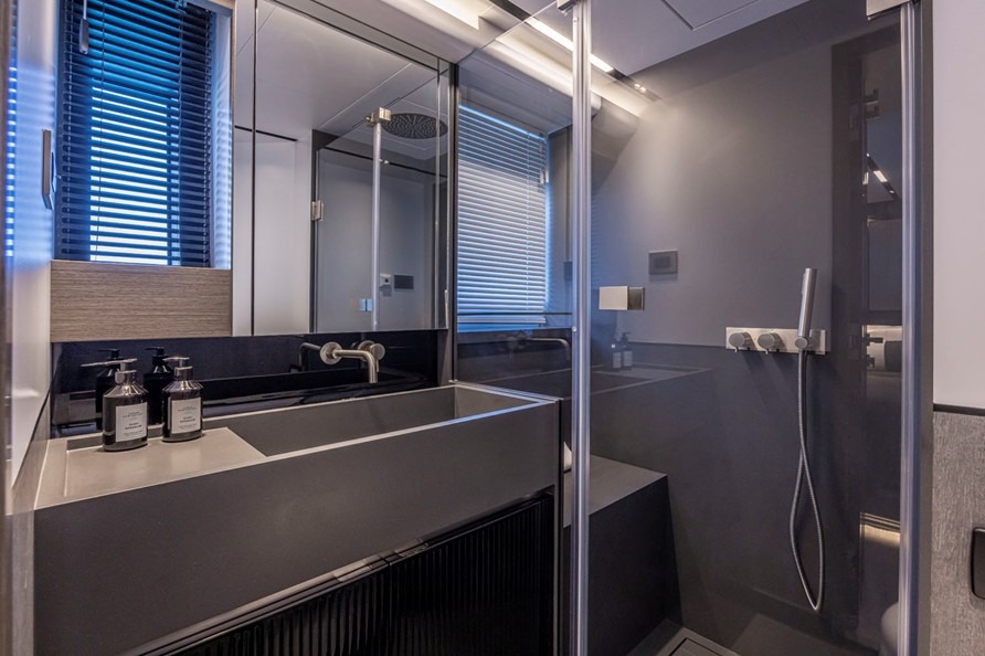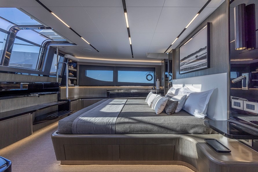 PEARLY SPENCER offers an exceptional combination of comfort, style, and performance. Her accommodation includes a full-beam owner’s suite on the main deck, with direct access to the foredeck, creating a private and serene retreat. On the lower deck, there are four additional guest