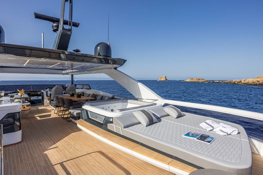 Jacuzzi : Flybridge hot tub with upholstered sun pad including under seat storage