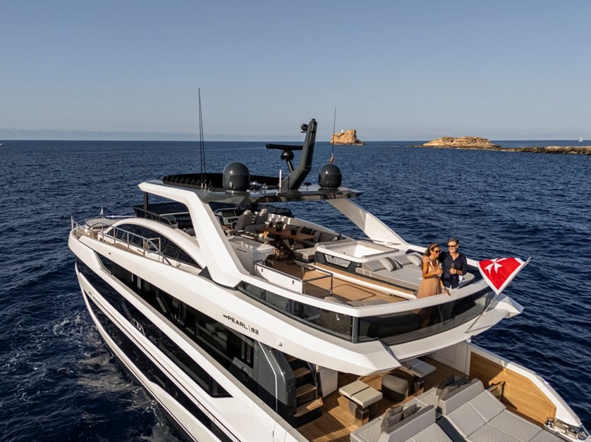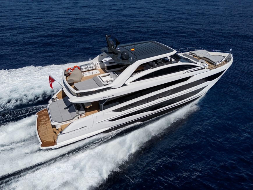The award-winning Pearl 82 stands out from the competition with her five-cabin layout, expansive deck space, fold-down terraces, double garage, and class-leading volume. She has earned multiple prestigious accolades, including Best Layout at the 2024 World Yacht Trophies, Motor Boat of the Year 2025 in the competitive flybridge over 60’ category, and Class Winner at the 2025 Yacht & Aviation Awards.