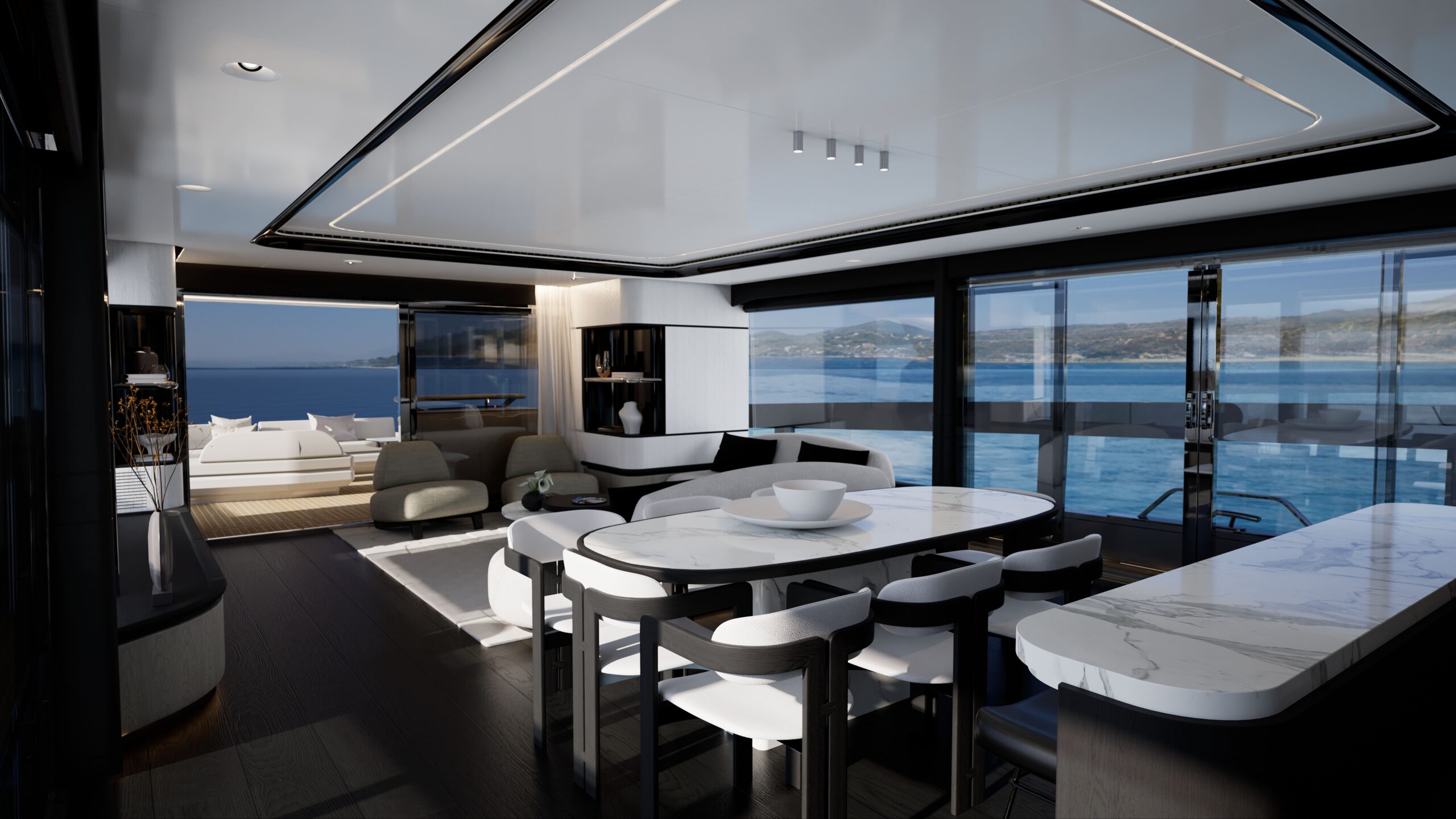 Dixon Yacht Design exterior styling and naval architecture. Kelly Hoppen interior design with choice of styles